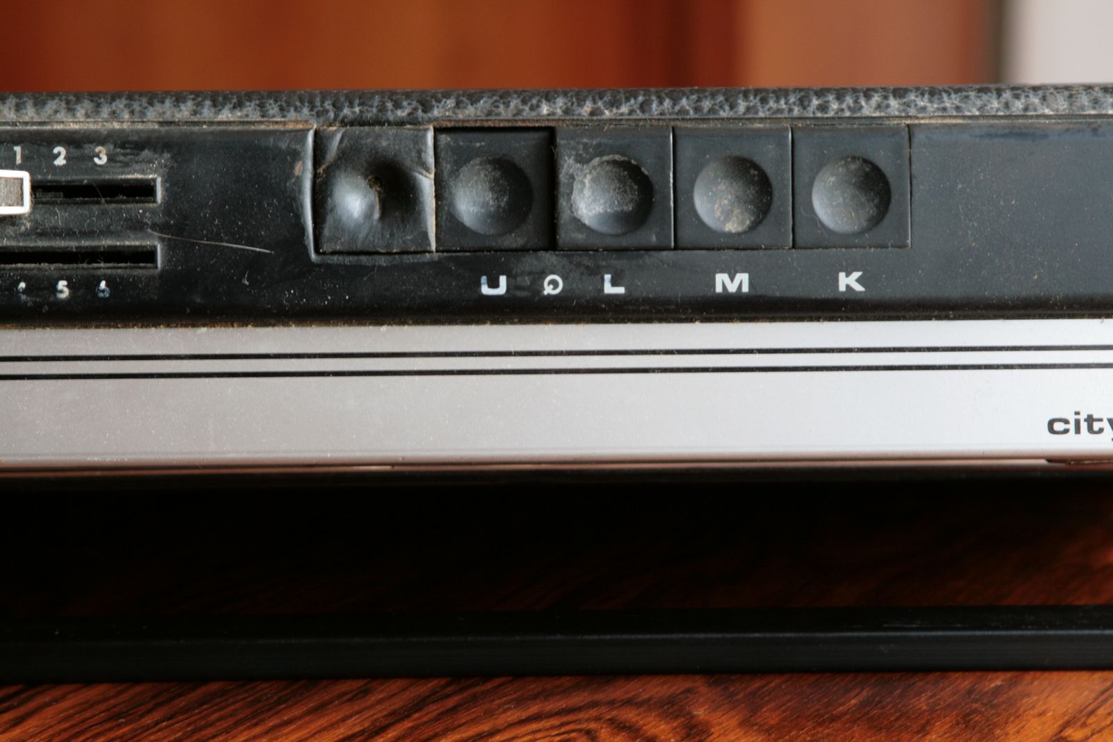 And this is how it arrived. The On/Off push button had melted and the surrounding panel worn. The case dirty and the aerial tip missing:-